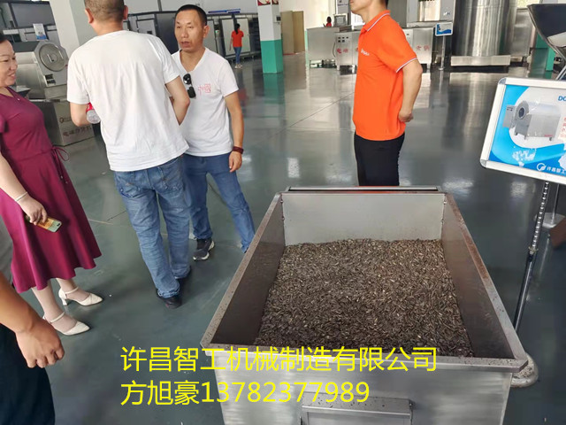 许昌智工7-10型电磁炒货机一锅可炒制60斤瓜子,20分钟一锅,炒出瓜子焦香酥脆,不掉皮客户非常满意,现场签订合同订购电磁炒货机一台