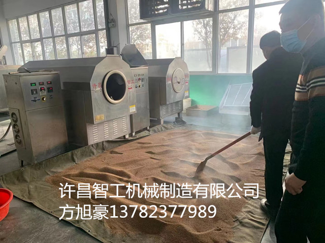 12月12日,河南客户一行二人带200斤芝麻来到许昌智工机械制造有限公司考察7-15型电磁炒货机。 DCCZ7-15型电磁炒货机,一锅可炒制200斤芝麻 芝麻经过水洗入锅40分钟即可炒出磨油芝麻的效果,炒出芝麻鼓肚饱满均匀一致出油率高,客户看了赞不绝口