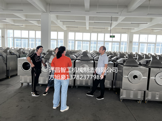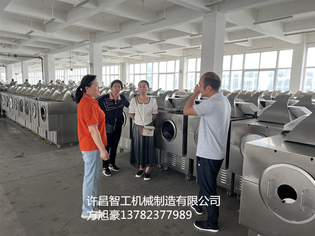 2020年7月21日,河南客户一行三人来到许昌智工机械制造有限公司考察小型电磁炒货机。 许昌智工小型电磁炒货机,智能控温操作简单,节能环保,客户非常满意